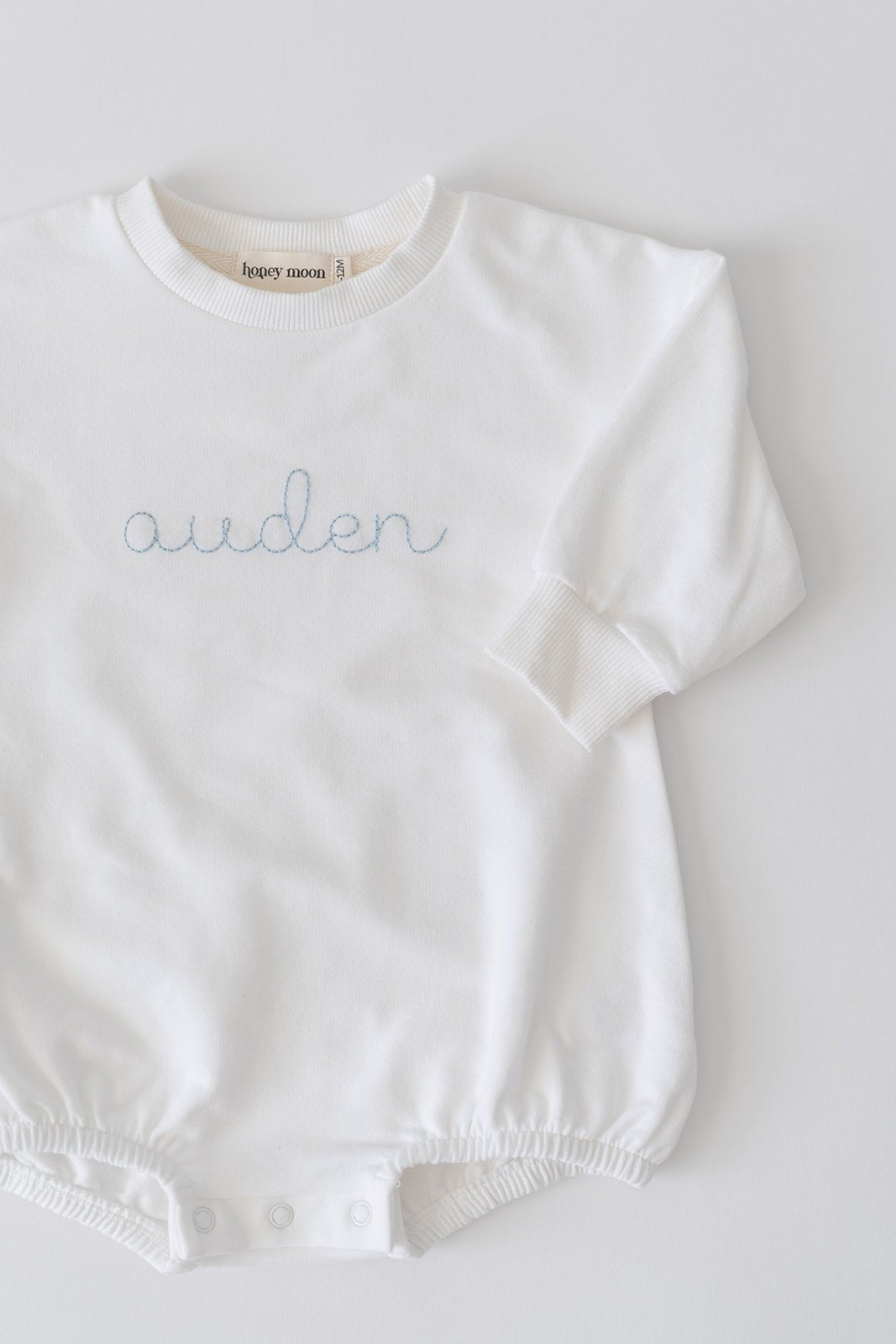 Our embroidered bubble romper is a no-brainer outfit you'll reach for again and again. Made of 95% organic cotton and 5% spandex, it has the perfect amount of stretch to move with your little one. It features a soft sweatshirt fabric that is cozy and warm, ribbing along the neckline and sleeves, and 3-snap buttons at the bottom for easy dressing and diaper changes. (Style tip: match your thread color to a pair of our knee-high socks for the sweetest little combo)