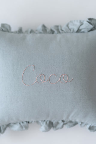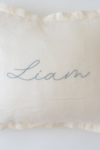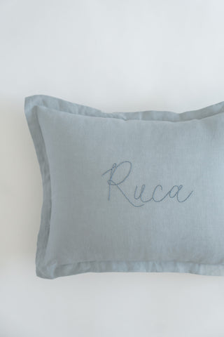 cream pillow + powder blue thread + font B