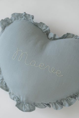 dusty blue pillow + buttercup thread + font E