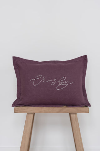 mauve pillow + plum thread + font B